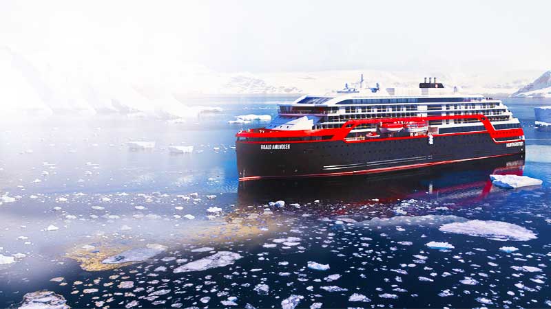 سبزترین کشتی جهان سفر خود را با عبور از گذرگاه شمال غربی آغاز کرد و اولین کشتی هیبریدی سفر افسانه ای خود را تکمیل کرد. بخش کشتی تفریحی لوکس و بخش ایستگاه تحقیقاتی، کشتی رولد آموندسن شرکت هرتیگروتن مسیر 3000 مایل دریایی از اقیانوس اطلس تا اقیانوس آرام را با نیروی برق تکمیل کرد. این کشتی نام پیشگام قطبی نروژی را به خود گرفت که برای اولین بار این مسیر را از سال 1903 تا 1906 پیمود.